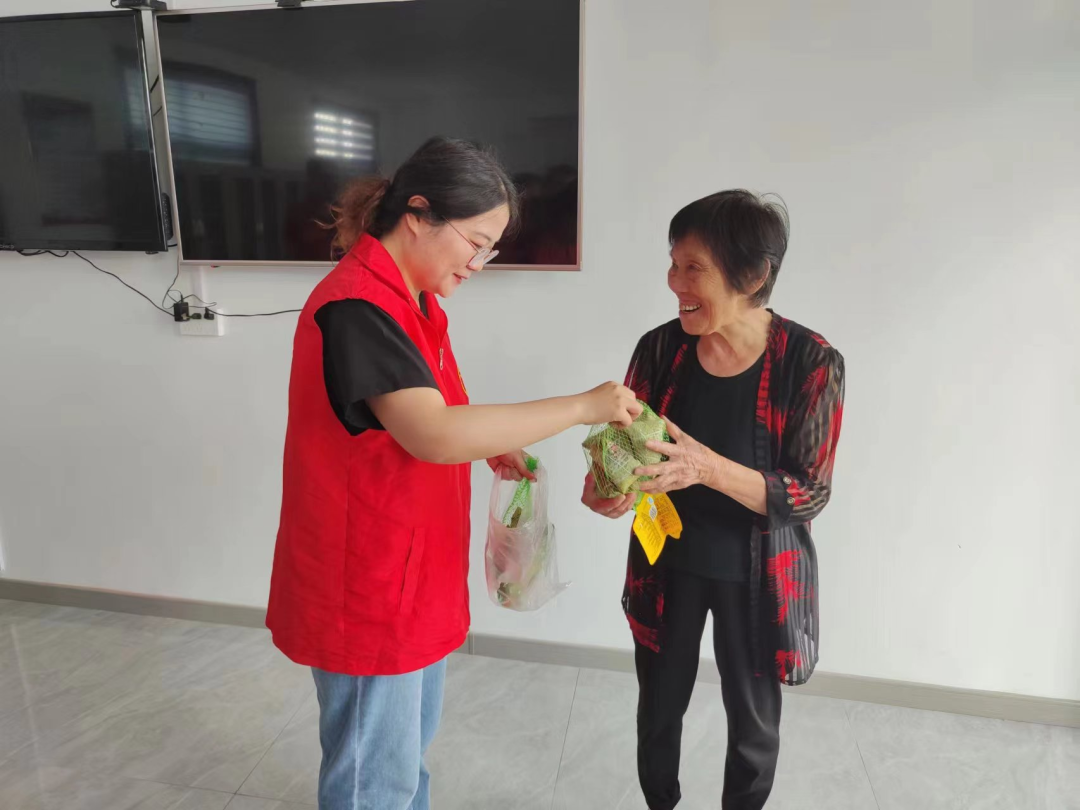 活动中,学院党总支副书记张俊峰带领学生支部的党员同志给门庄社区居民送去粽子,用“爱心粽”传递浓浓端午情,并与他们拉家常,关切询问其近期生活、身体状况,送去节日的温暖与祝福。