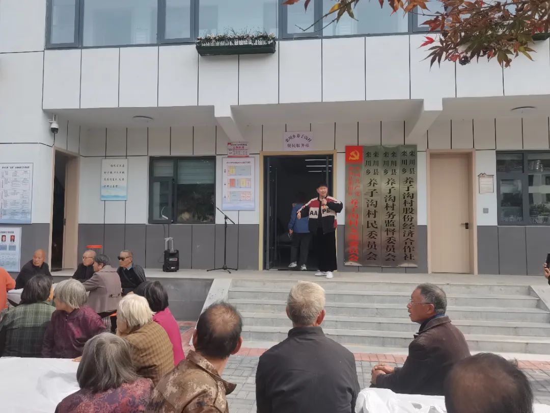 在养子沟村党群服务中心,洛阳职业技术学院驻村书记和村委会干部组织村民有序观看演出。曲剧《十五贯》、豫剧《抬花轿》《血溅乌纱》《大登殿》、歌曲《今天是个好日子》《天亮了》《爱我中华》、竹笛独奏等精彩节目依次上演,展现了洛阳职业技术学院师生过硬的专业素养,表达了对长者的节日祝福和对乡村发展的美好祝愿。