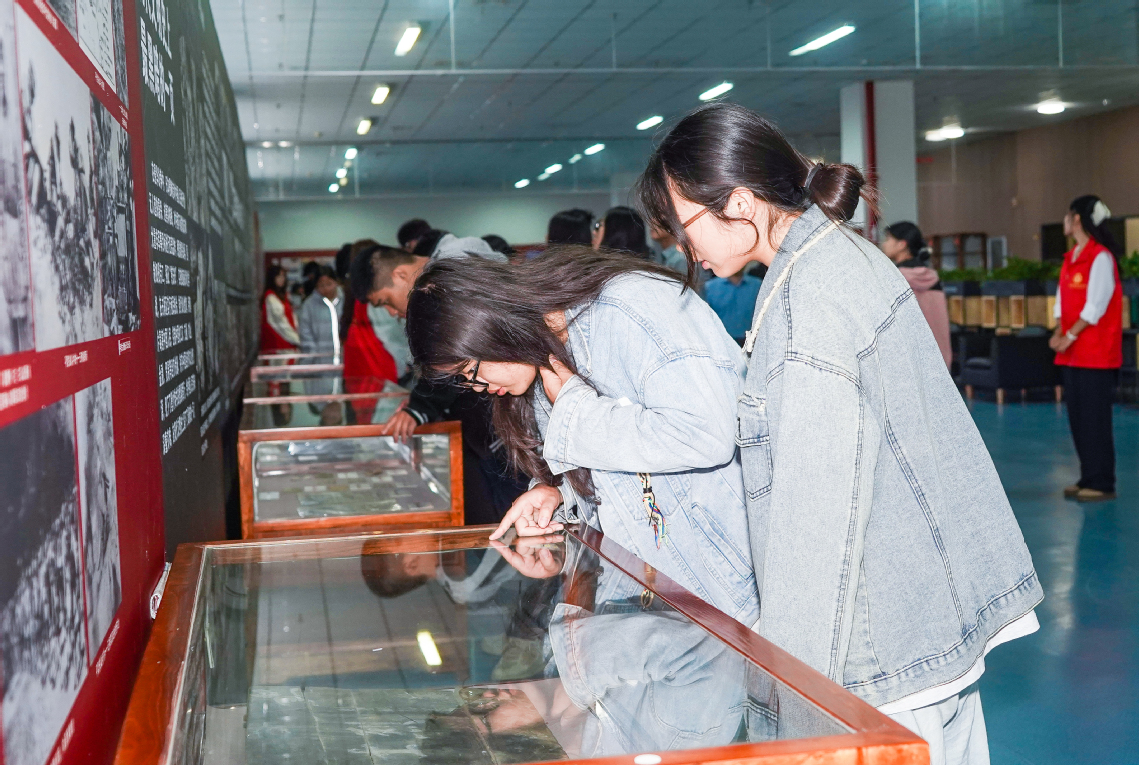 开幕式后,在我校校友、洛卫军品博物馆馆长王洛卫的讲解下,与会人员集体参观展览,详细了解抗战历史,感悟伟大抗战精神。据了解,此次展览拟持续1个月,面向广大师生和社会公众开放。