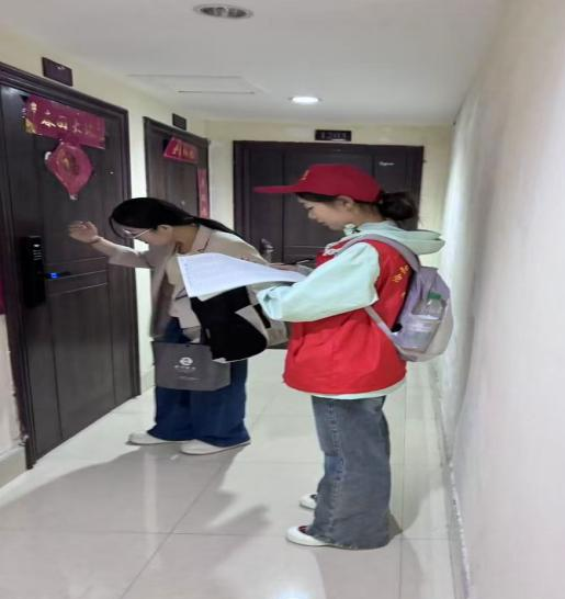 仪式结束后,志愿者们在社区工作人员的引导下投入实践环节,挨家挨户开展走访调查。每到一户,志愿者们都主动询问家中是否有60岁以上老年人,若有则细致填写相关信息,并耐心向居民说明,信息登记是为了精准掌握辖区老年群体情况,为后续提供更贴合需求的养老服务奠定基础,获得了居民们的积极配合。